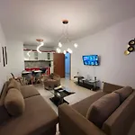 Geniet van een ingerichte keuken in Aura Skanderbeg Square Apartments met een koelkast, een oven en keukengerei voor uw gemak. Het is vrij dicht bij de dichtstbijzijnde bushalte 9 Kateshet opgericht.